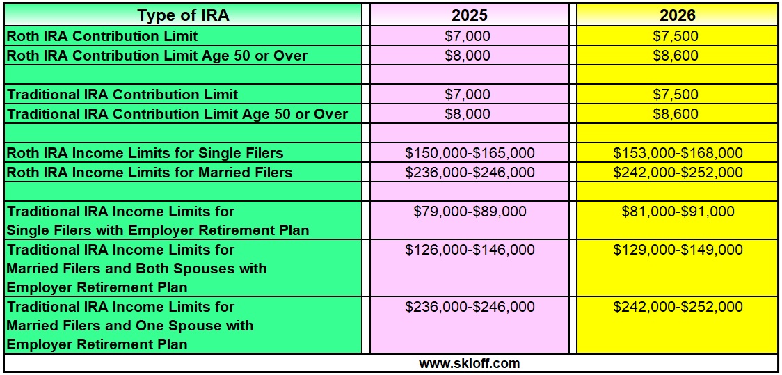 IRA Contribution and Income Limits for 2025 and 2026