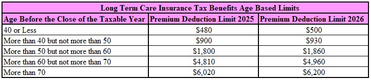 | Long Term Care Insurance Tax Benefits Age Based Limits | ||